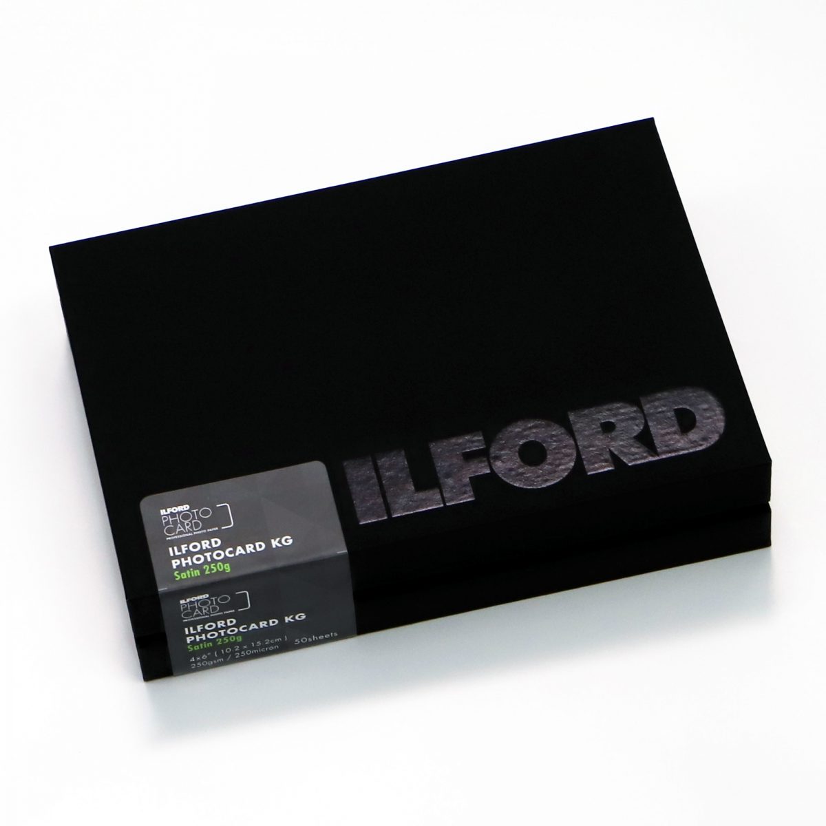 「ILFORD PHOTOCARD Satin 250g」は、半光沢プロフェッショナルRCフォトペーパーに角丸加工を施したKGサイズのインクジェットペーパーが黒いフォトカードボックスに入った製品です。
