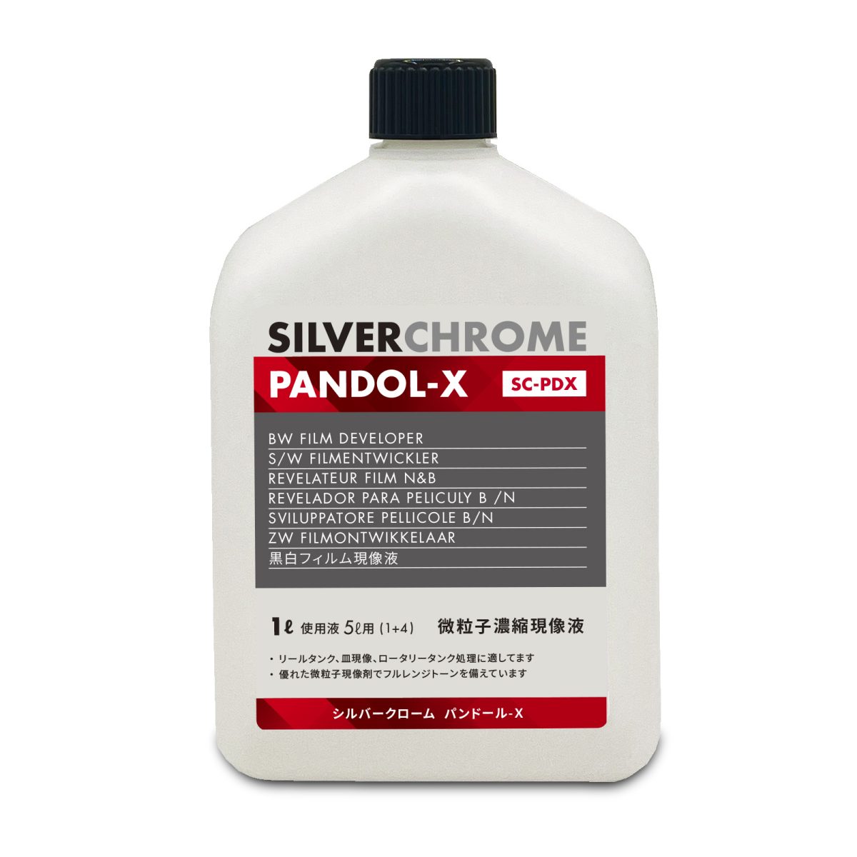 シルバークローム パンドール-Xは、PQタイプ(フェニドン系)のフィルム用微粒子用微粒子濃縮現像剤です。
